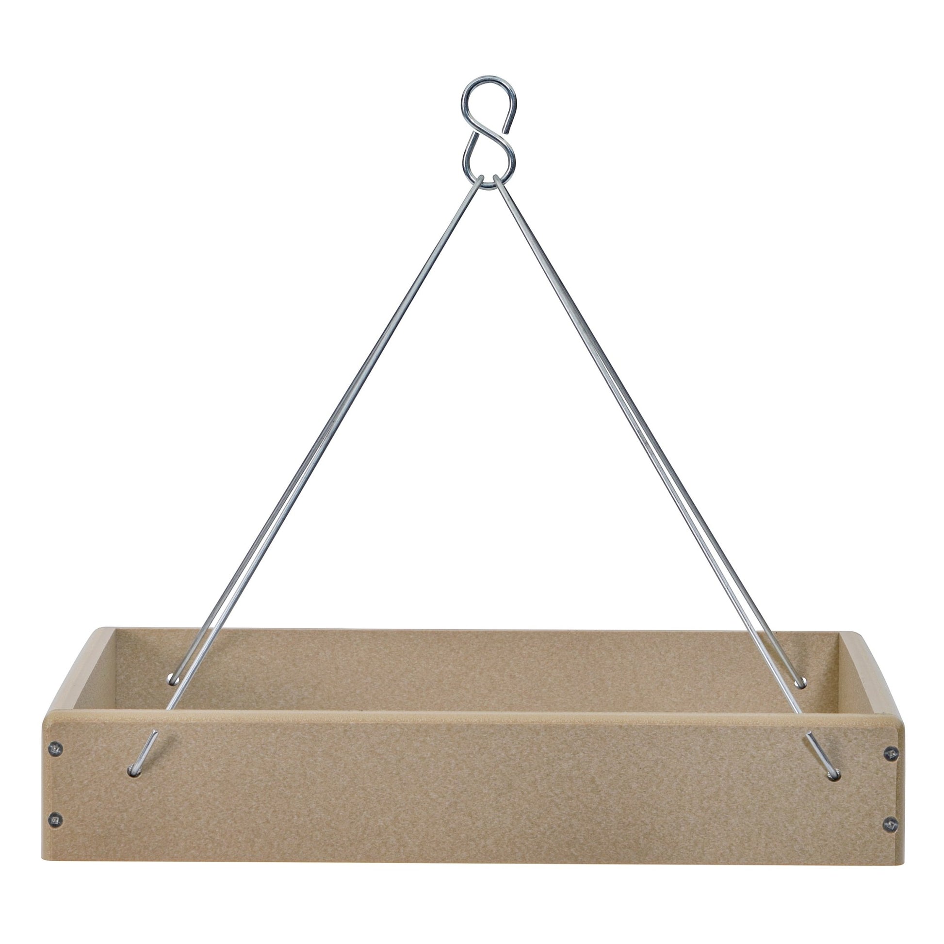 This large hanging tray feeder gives you an unobstructed view of the birds feeding from it. The feeder is constructed with recycled poly lumber material and is easy to care for and easy to clean.